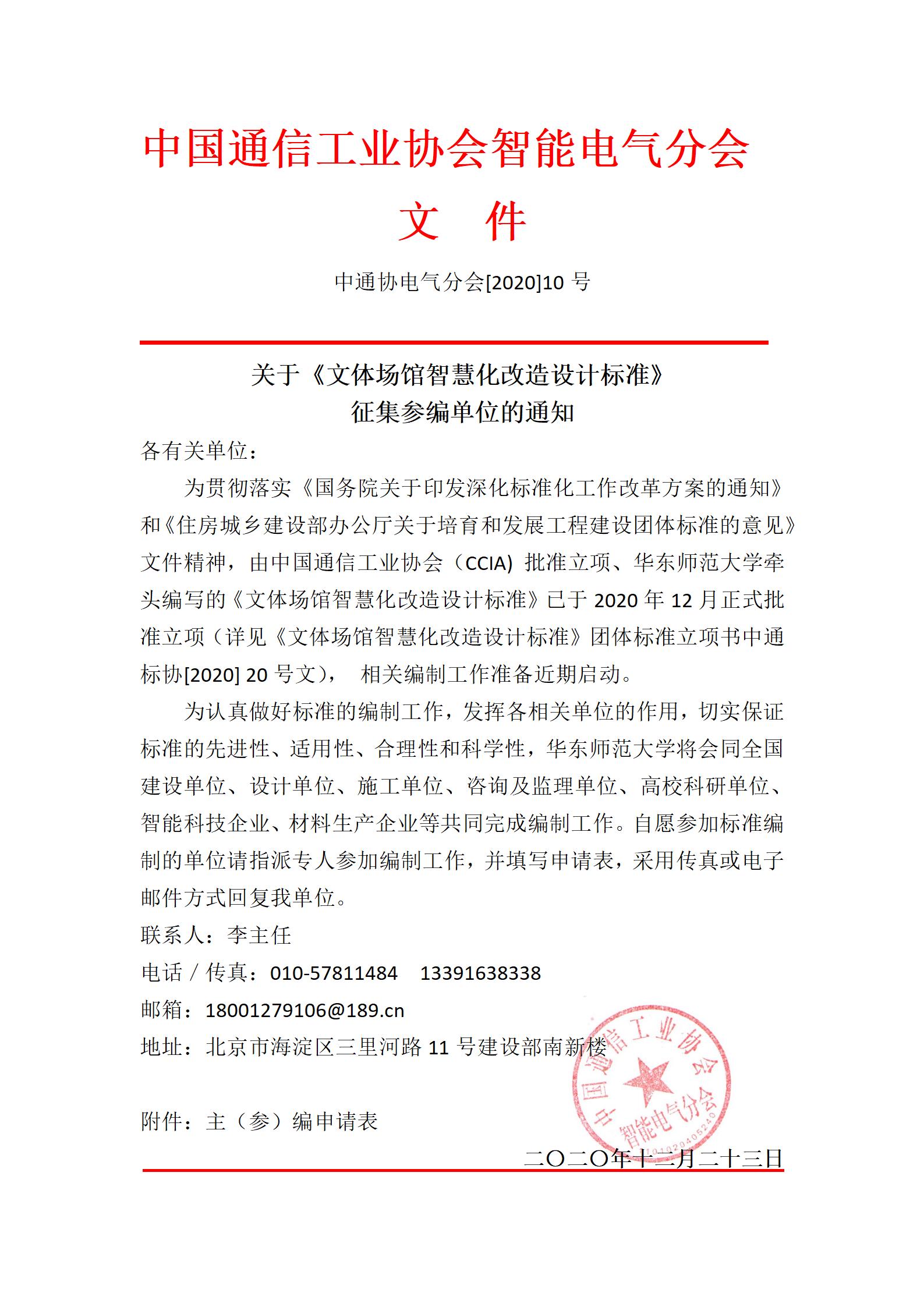 附件:关于召开中国通信工业协会标准《文体场馆智慧化改造设计标准》编制组成立暨第一次工作会议的通知